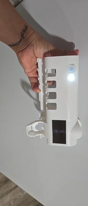 Este soporte esteriliza y organiza cepillos, asegurando limpieza y comodidad diaria para todos en casa.
